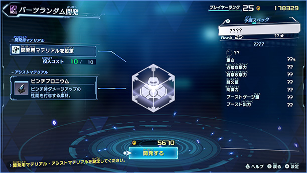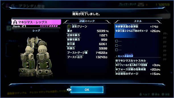 イクシア帰還後に開発用素材で新しくパーツを開発したり、