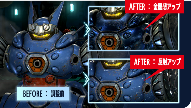 メタリックな機体から歴戦の戦士のような錆付きまで自由自在!