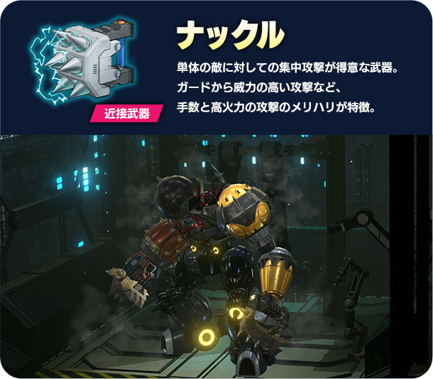 近接武器(グレートソード・デュアルソード・ソード&シールド・ナックル)、