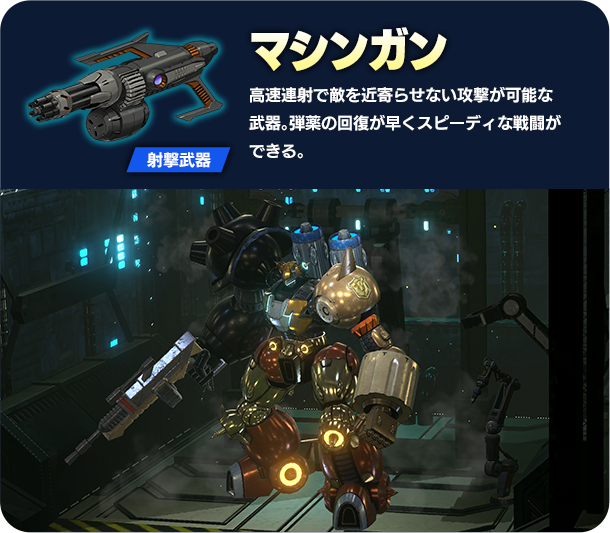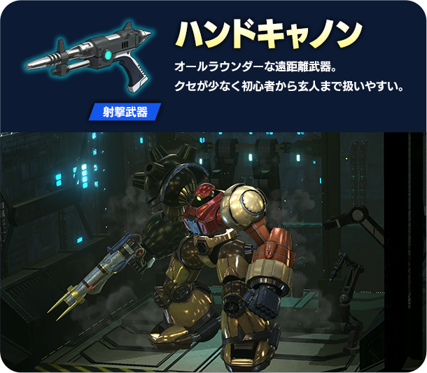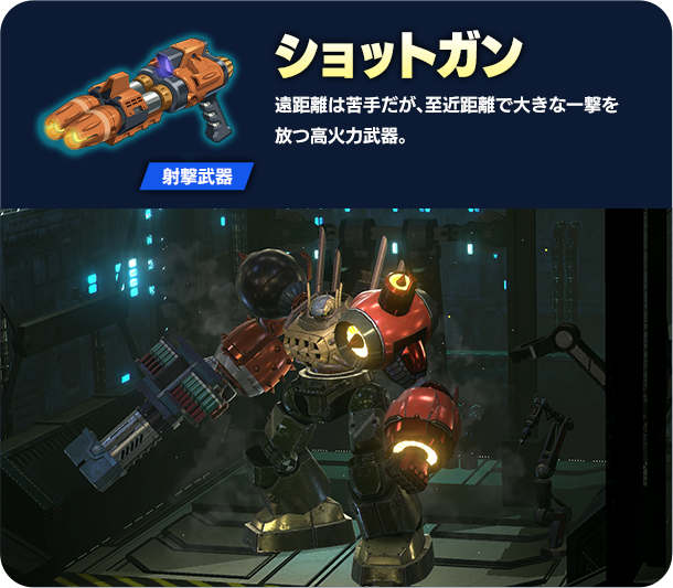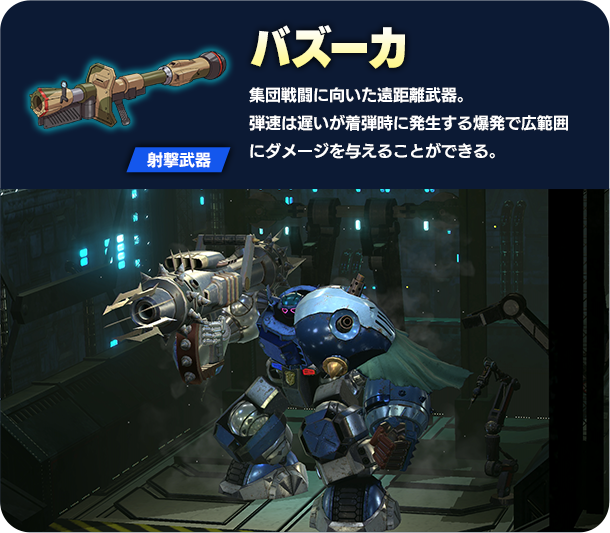 射撃武器(バズーカ・ハンドキャノン・マシンガン・ショットガン)の計8種。