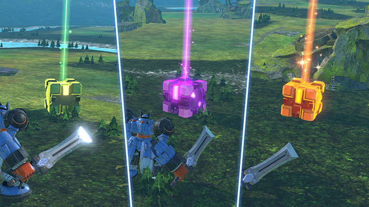マップ上に点在するバトルフォースポッド(BFP)を取るとバフ・回復・必殺技など様々なアイテムを獲得できる。